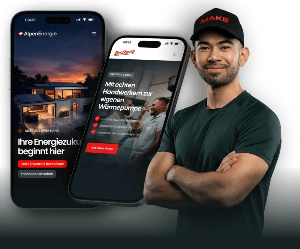| Design | ✖ Sieht aus wie 1000 andere Seiten | ~ Okay, aber man sieht: Template | ✔ Massgeschneidert – dein Betrieb, dein Look |